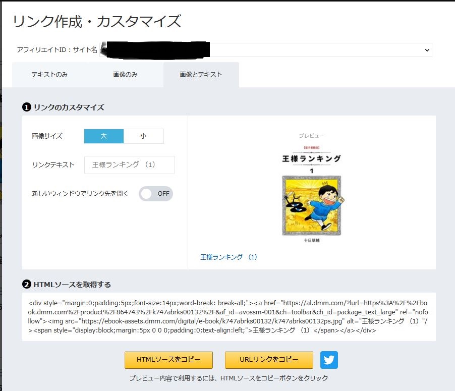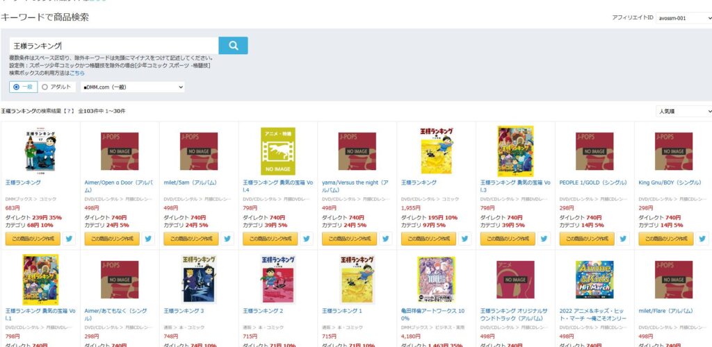 アフィリエイトしたい商品を探してリンクコードを取得してください
